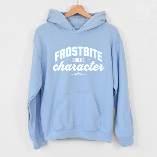 Novelty "Frostbite Builds Character" Hooded Sweatshirt - Winter Humor