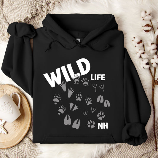 "Wild Life NH" Hoodie with Animal Tracks Design