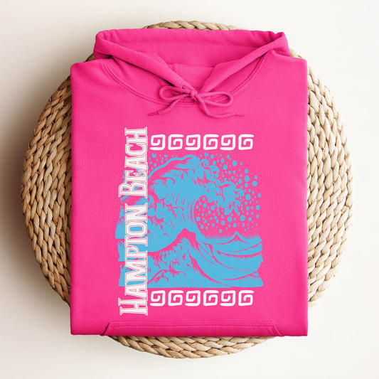 Hampton Beach Wave Graphic Hooded Sweatshirt - Retro Coastal Style