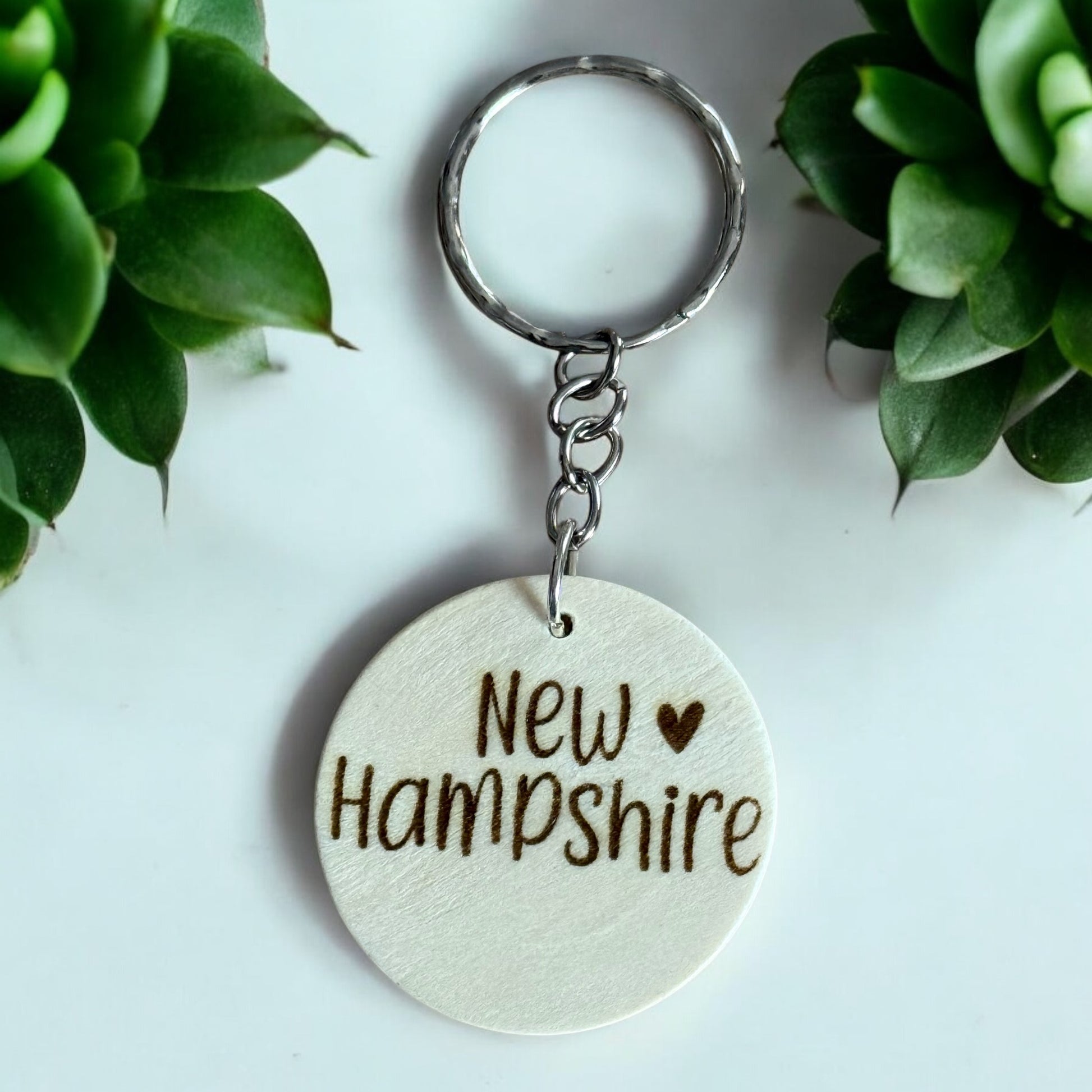 New Hampshire Love Engraved Wooden Keychain – Handmade Keepsake